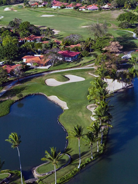The course is located on cliffs high above the Chavon River, and features several signature holes, including the island green 13th hole.